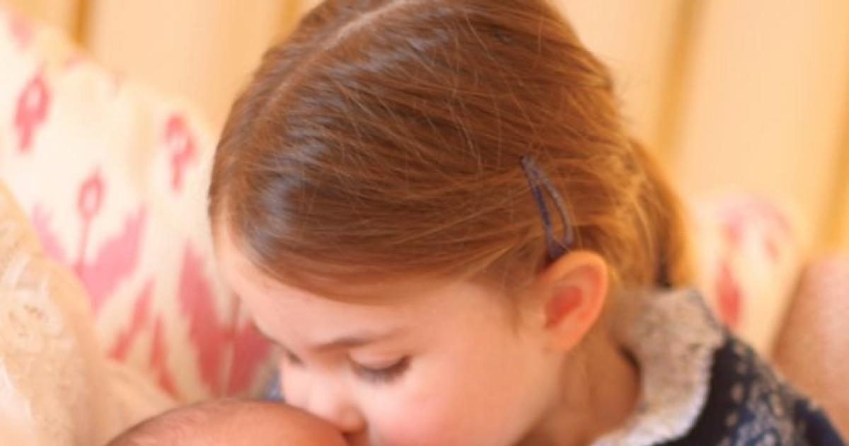 Held in a loving embrace, the latest addition to the British Royal Family receives a gentle kiss from his older sister Charlotte to wake him from his peaceful slumber.