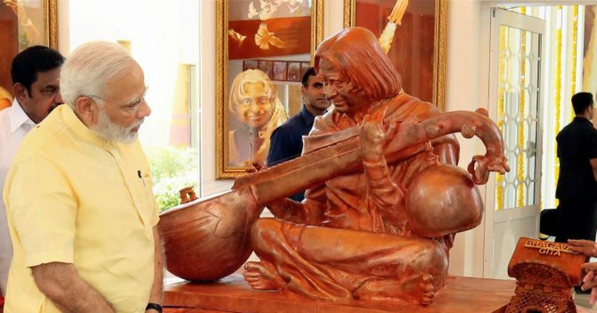 Vaiko-led Marumalarchi Dravida Munnetra Kazhagam and the Pattali Makkal Katchi have raised questions on the need for keeping the engraved ‘Bhagavad Gita’ alongside the wooden statue of Kalam playing the musical instrument ‘veena’ in the Rs 15 crore memorial, designed and built by the Defence Research and Development Agency with which Kalam was associated for a long time.