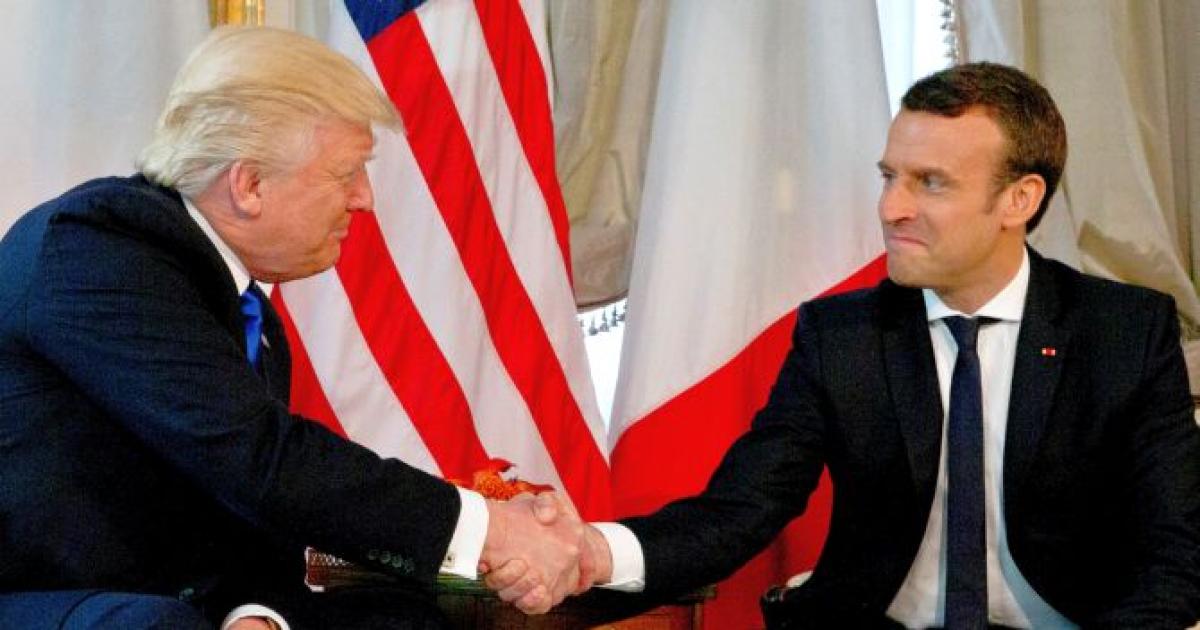 Trump and Macron’s handshake was white-knuckle prolonged one, with as usual fierce, crunched bones, tightened jaws and both had a fixed smile and as per the French president was entirely intentional.