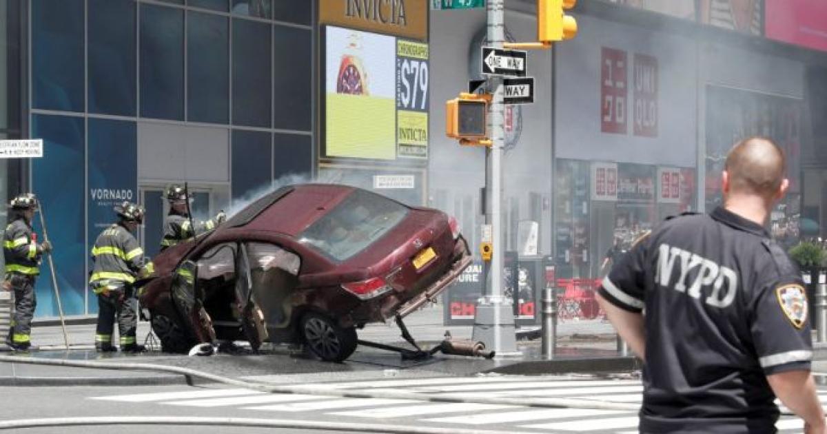 Smoke was coming out of the car’s hood and the vehicle was slightly overturned on a barrier at a sidewalk in Times Square. O’Neill reiterated that there is no indication that the incident is “terror related”.