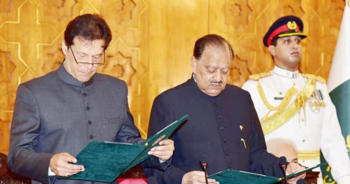 Khan, 65, the Chairman of the Pakistan Tehreek-e-Insaf, was administered the oath of office as Pakistan's 22nd prime minister by President Mamnoon Hussain at a simple ceremony held at the Aiwan-e-Sadr (the President House) in Islamabad.