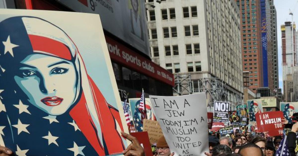Over a thousand people from various faiths declared ‘I am a Muslim too’ as they assembled at the iconic Times Square in New York to express solidarity with the Muslim community and protest against US President Donald Trump’s immigration policies.