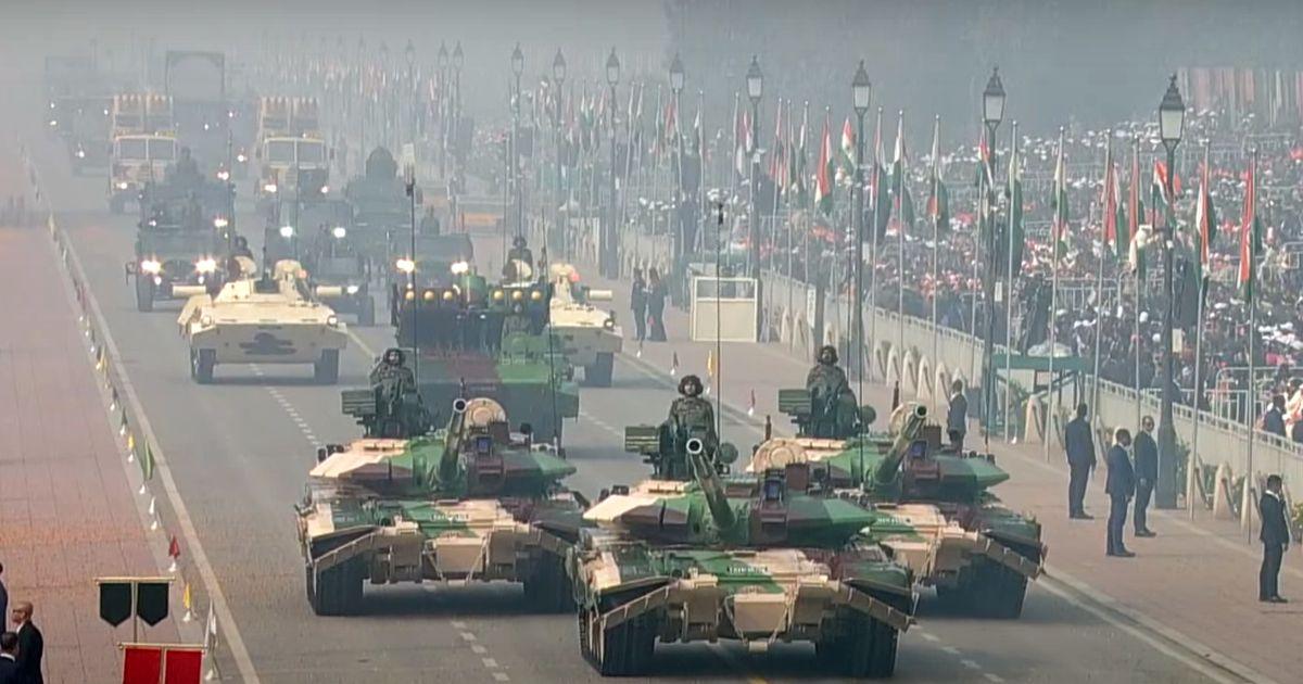 The T-90 Bhishma tanks, NAG missile systems, infantry combat vehicles, all-terrain vehicles, weapon locating radar system 'Swathi', drone jammer system and medium-range surface-to-air missiles were among the key displays by the mechanised columns.