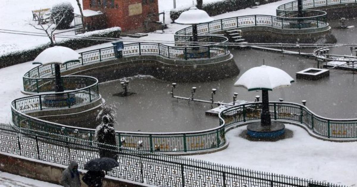 A snow-covered garden makes Srinagar look picturesque. Photograph: PTI