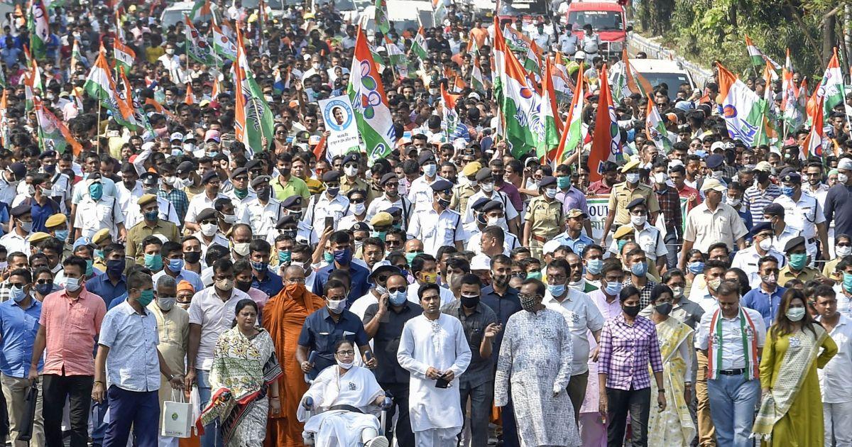 Addressing the gathering after the hour-long march, Banerjee said attempts to incapacitate her to stop her from campaigning have failed, and asserted she will canvass for TMC candidates across the state on wheelchair.