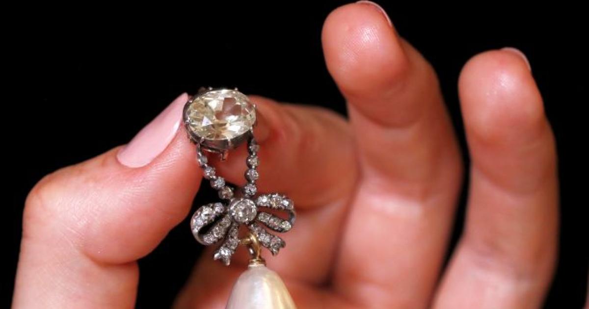 A pearl and diamond pendant owned by Marie Antoinette before she was beheaded during the French Revolution sold for $36 million (Rs 259 crore) at the auction. The pendant featuring an oval diamond and drop-shaped pearl set a new record price for a pearl jewel sold at auction. "Marie Antoinette's pendant is simply irreplaceable and the price it fetched is about far more than the gem itself," Eddie LeVian, the chief executive of jewellers Le Vian, said in a statement. Photograph: Denis Balibouse/Reuters