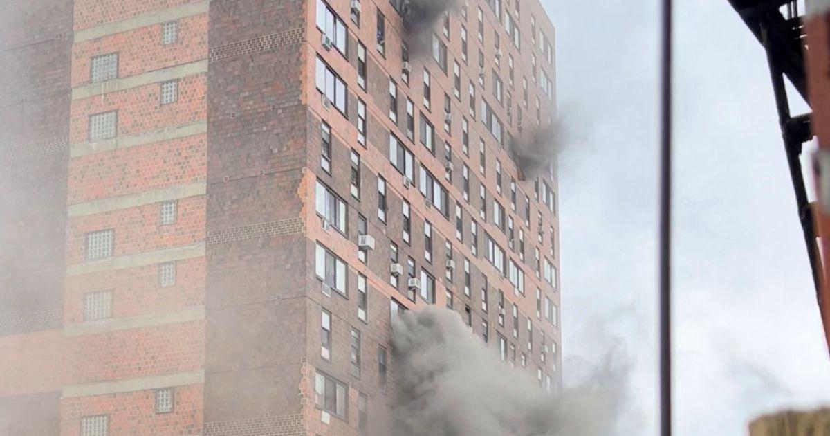 The New York City Fire Department said that approximately 200 of its members were operating on the scene at the apartment building in the Bronx where the fire started around 11 AM on Sunday.