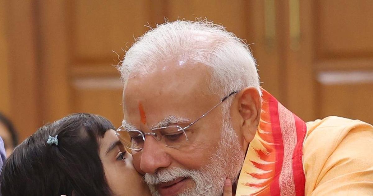 Prime Minister Narendra Modi celebrated Raksha Bandhan with children at his residence in Delhi on Saturday.