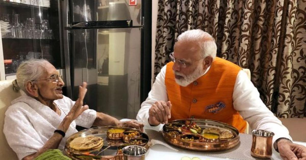 Modi spent around half an hour with his mother, who lives with his younger brother Pankaj at Raisan village near Gandhinagar.