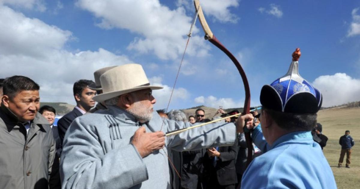 NaMo is one stylish man. While attending the Mini Naadam Festival in Mongolia's Ulan Bator during his three-nation tour in May last year, the PM donned the Mongolian hat (Oh he loves those!) dressed up in the traditional costume, played the horse-whisperer (Even got one gifted to him. A horse, we meant!), and shot an arrow with confidence!