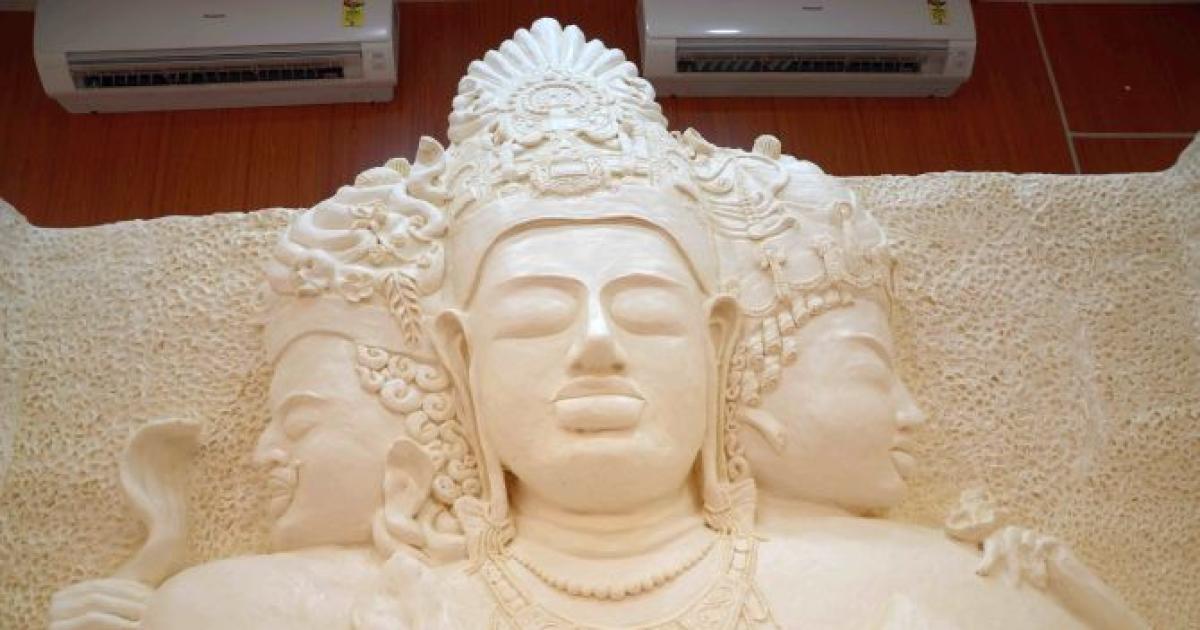 On the occasion of Maha Shivratri, a giant Trimurti made of margarine (butter), has been built at the Chhatrapati Shivaji International Airport in Mumbai.