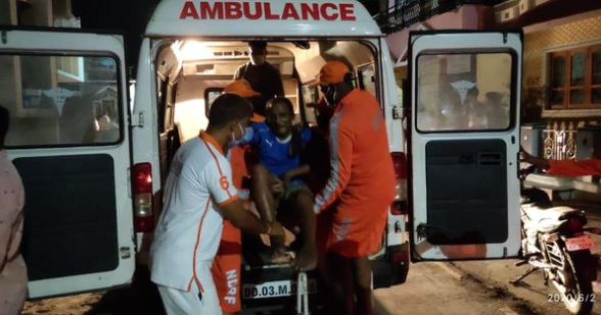 IMAGE: NDRF personnel evacuates an elderly person in the Daman area of Maharashtra ahead of Cyclone Nisarga's landfall. Photograph: ANI Photo