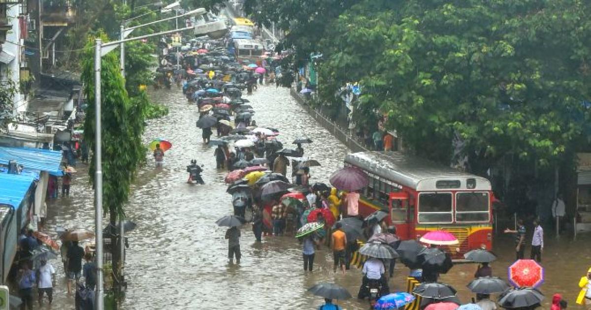 The downpour flooded many roads and streets in low-lying areas of the city and its adjoining districts of Palghar and Thane. People at some places were seen wading through waist-deep water.