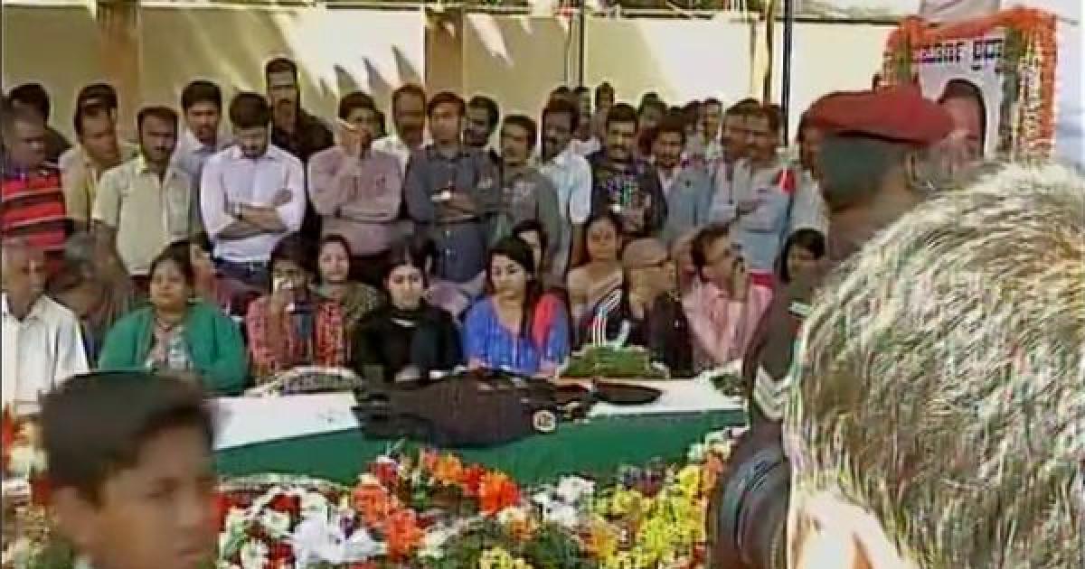 Singh’s daughter Madhu joined the soldiers in carrying the body to the cremation ground.