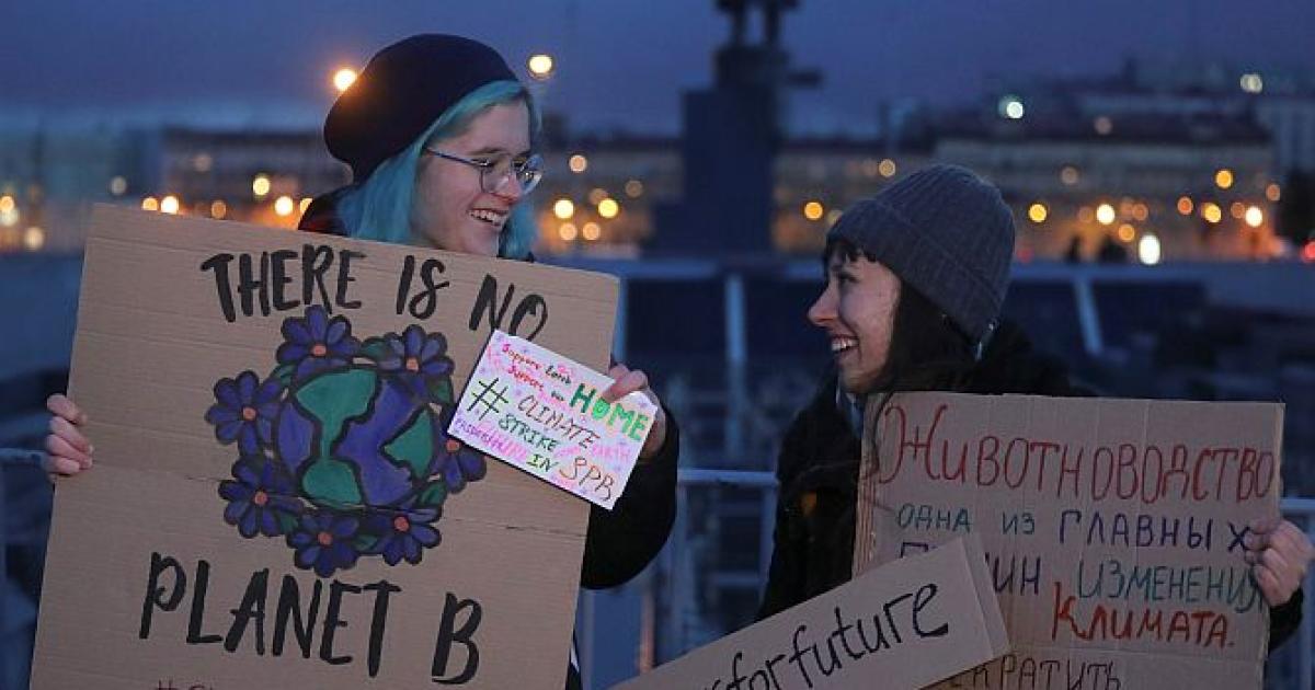 Activists attend an environmental demonstration, part of the Global Climate Strike, in Saint Petersburg, Russia. Photograph: Anton Vaganov/Reuters