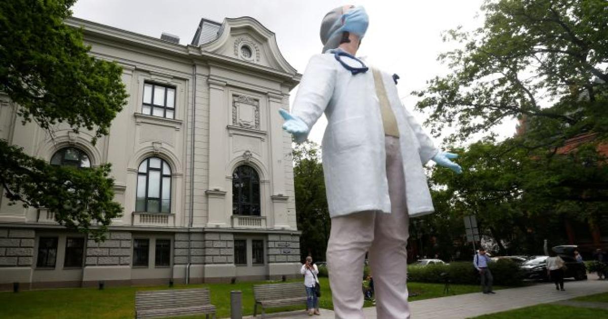 Latvia has erected a six-metre-high sculpture "Medics to the World" which shows a female medic who has just come out of the treatment room and is getting ready for her next shift.