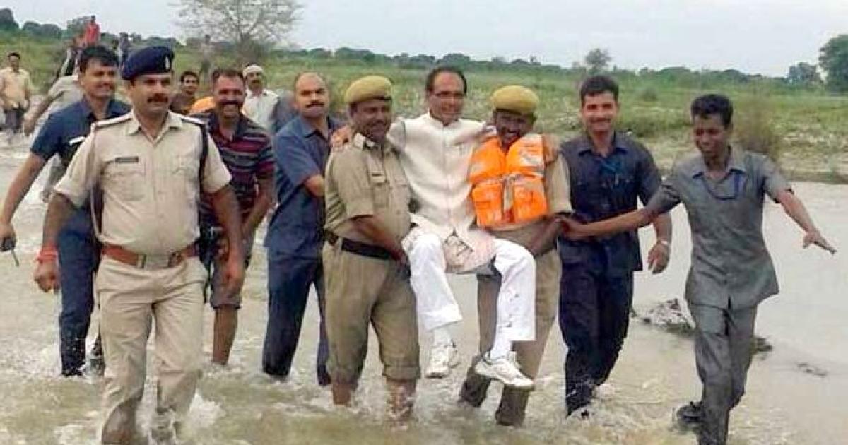 “Chouhan in a bid to garner cheap publicity has indulged in this photo stunt. Instead of mitigating the problems of flood-hit people in Panna and other parts, the chief minister has himself become a problem for people (security personnel),” Congress leader Arun Yadav said.