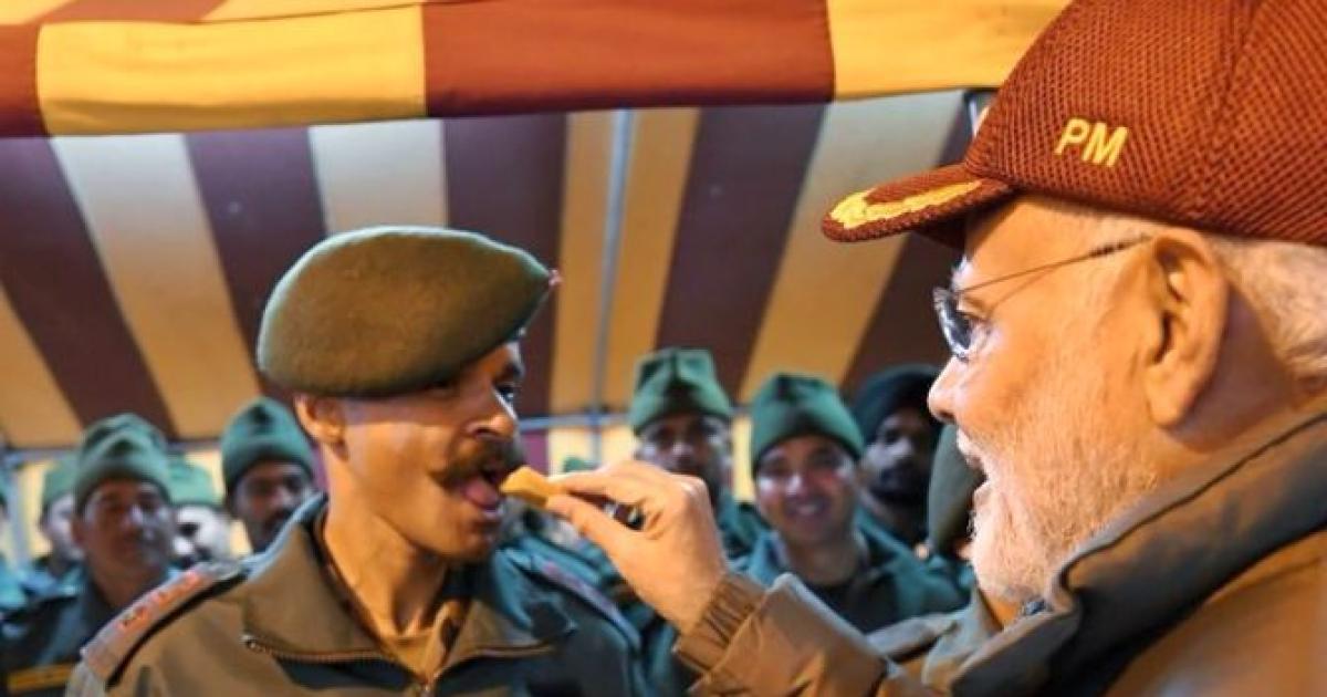 The prime minister offered sweets to the jawans. He also interacted with people from nearby areas who had gathered to greet him on Diwali.
