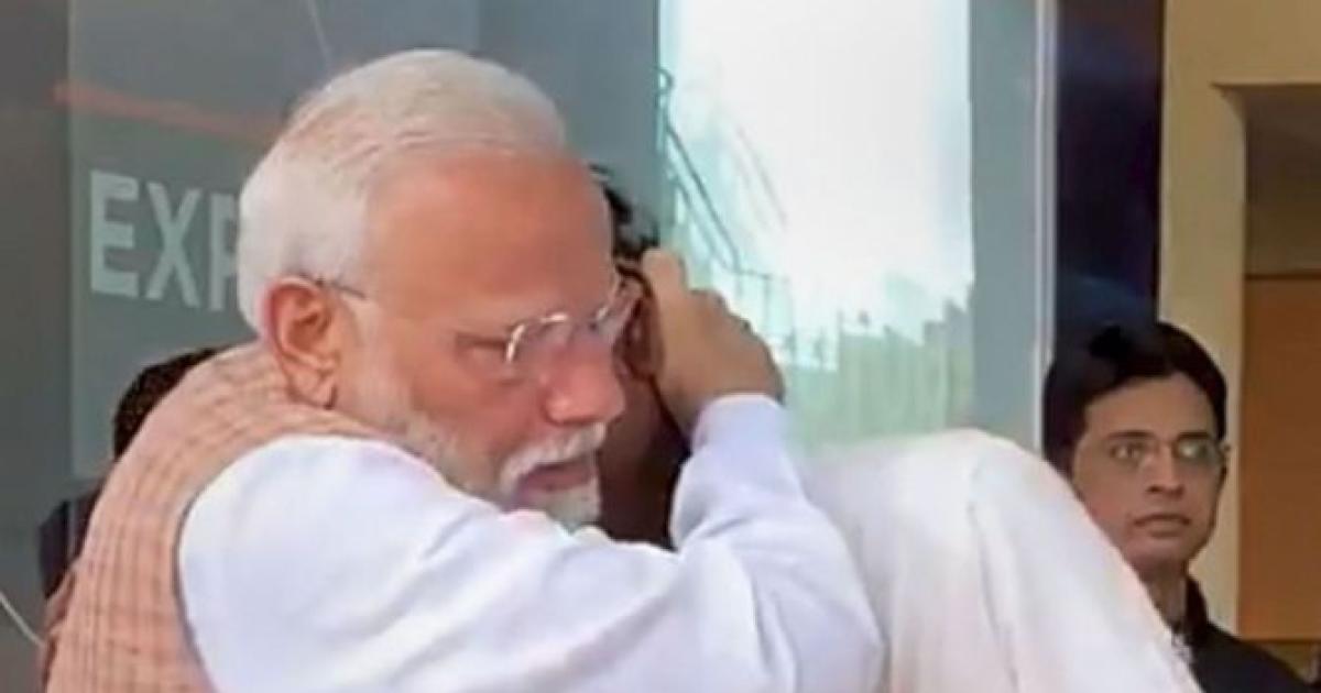 At this juncture, the prime minister, who was on his way to get into his car, gave him a 'reassuring' and tight hug, lending his shoulder to teary-eyed Sivan.