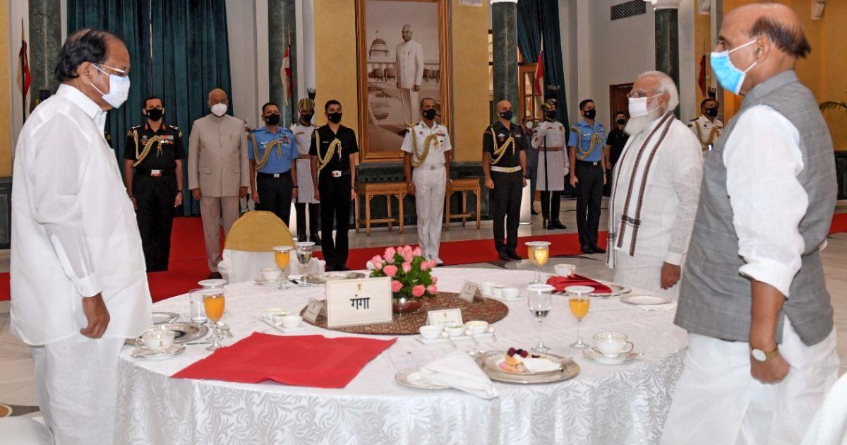 President Ram Nath Kovind invited the Union council of ministers for a high tea at the Rashtrapati Bhavan on Saturday.