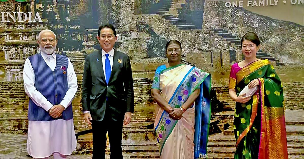 French President Emmanuel Macron, German Chancellor Olaf Scholz, Japanese Prime Minister Fumio Kishida and his wife Yoko Kishida, who was wearing a saree, Chinese Prime Minister Li Qiang, Australian Prime Minister Anthony Albanese along with his spouse and Mauritian PM Pravind Kumar Jugnauth and his wife, were among other dignitaries welcomed by Murmu and Modi.
