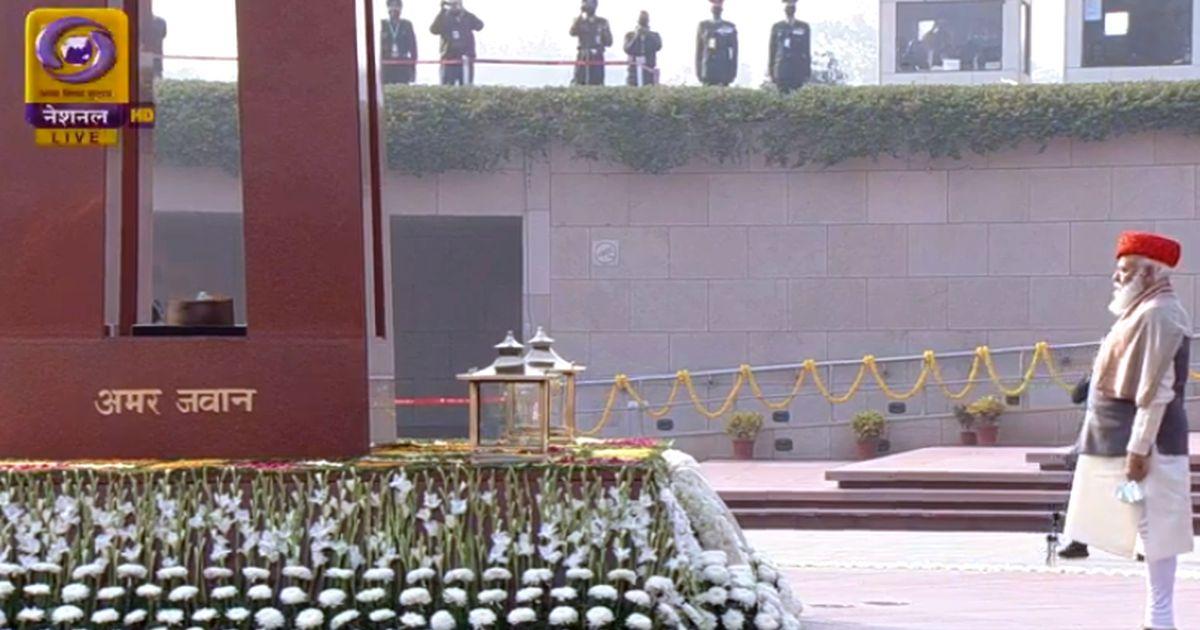 Prime Minister Narendra Modi on Tuesday led the nation in paying tribute to the fallen soldiers by laying a wreath at the National War Memorial in the national capital on the occasion of Republic Day.