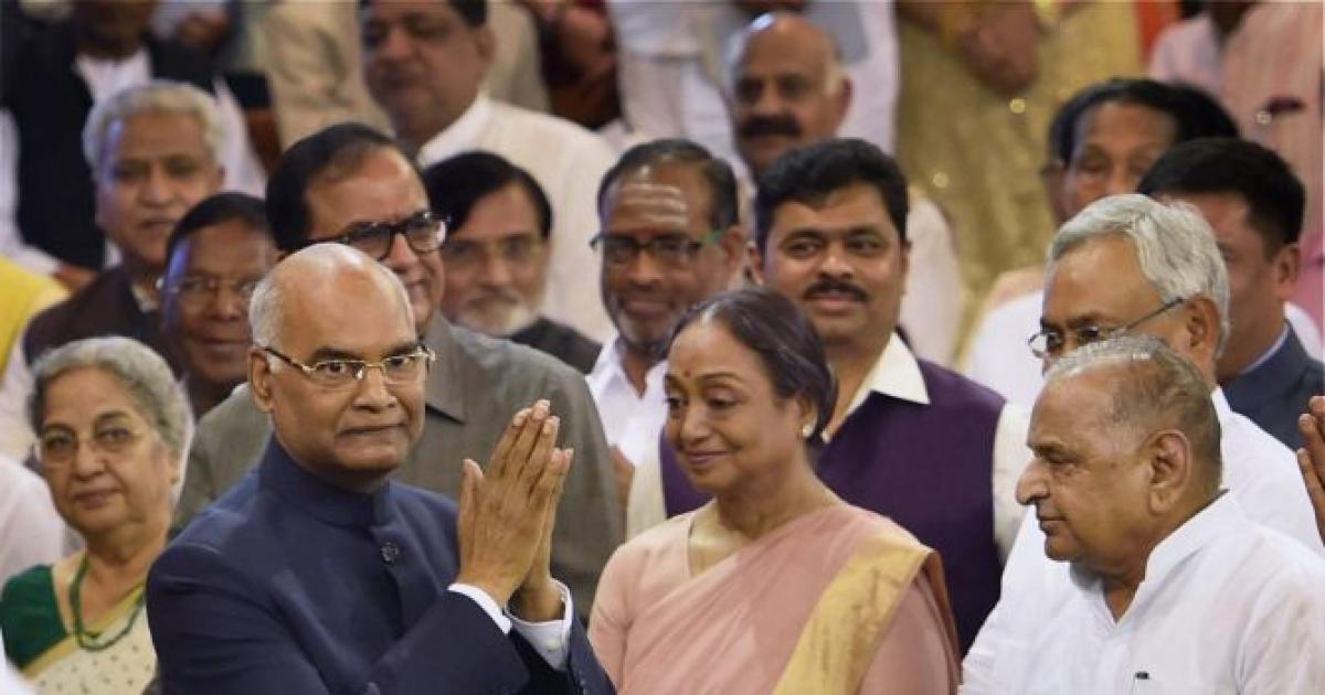 The 71-year-old laweyer took the oath in Hindi to thunderous applause and thumping of desks by the gathering, which included outgoing President Pranab Mukherjee, Vice-President Hamid Ansari, Prime Minister Narendra Modi, Lok Sabha Speaker Sumitra Mahajan and former President Pratibha Patil.