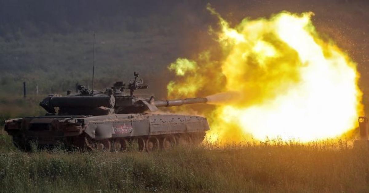 T-80U tank fires during a demonstration at the International military-technical forum ARMY-2019 at Alabino range in Moscow. Photograph: Maxim Shemetov/Reuters