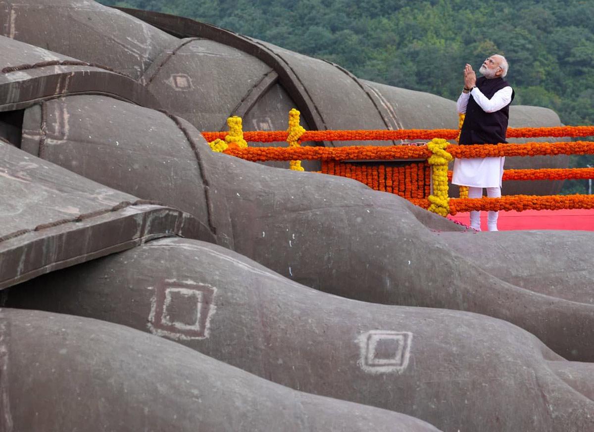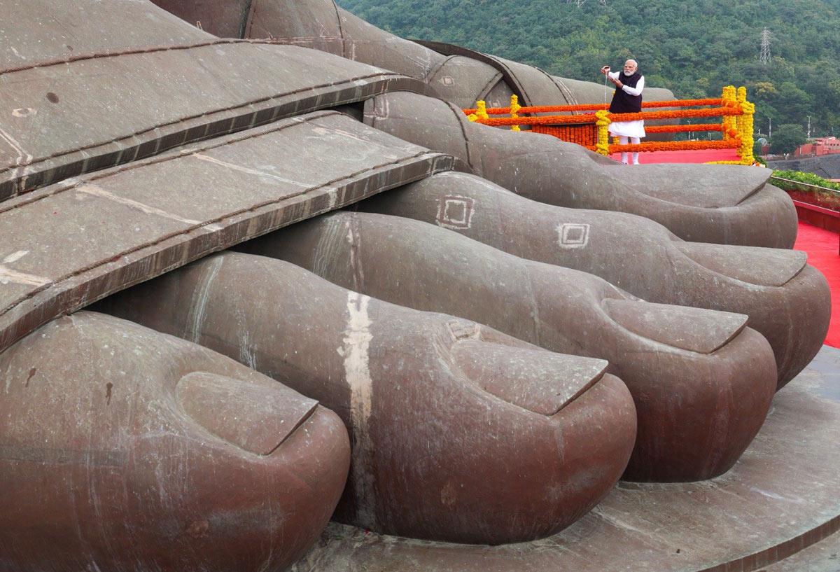 Modi arrived at Patel's 182-metre-tall statue, near Ekta Nagar in Gujarat's Narmada district, in the morning and paid his respects to the Iron Man of India by offering flower petals.