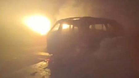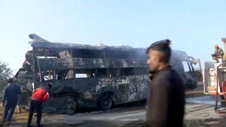 Visuals from the spot revealed charred buses and cars, reduced to mere mangled shells.