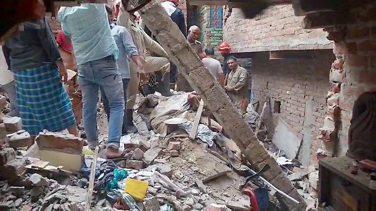 A senior police officer said, "Around 7.04 am on Saturday, we received information regarding the collapse of a four-storey building near Idgah, Welcome. When the police team reached the spot, they found that three storeys of the building had collapsed."