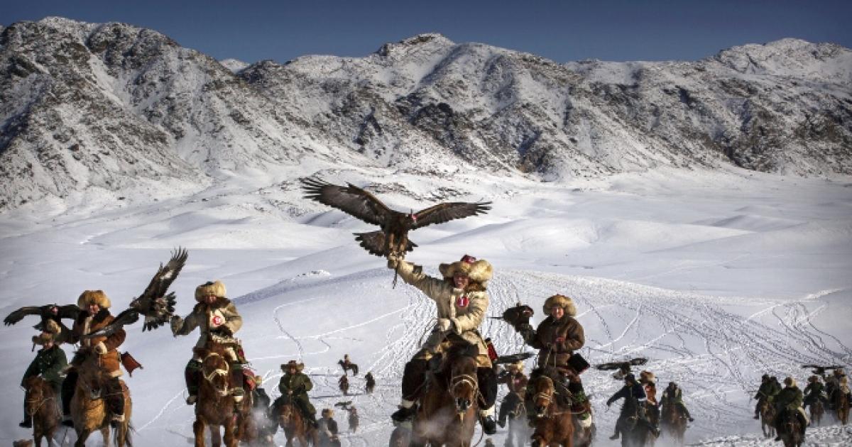 The training and handling of the large birds of prey follows a strict set of ancient rules that Kazakh eagle hunters are preserving for future generations.Photograph: Kevin Frayer/2016 Sony World Photography Awards