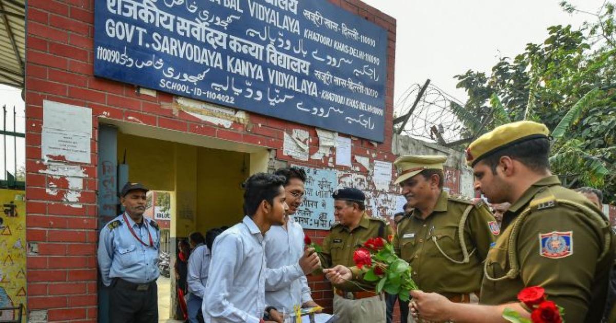 Police personnel also gave roses to students outside some centres to wish them good luck before their exam.
