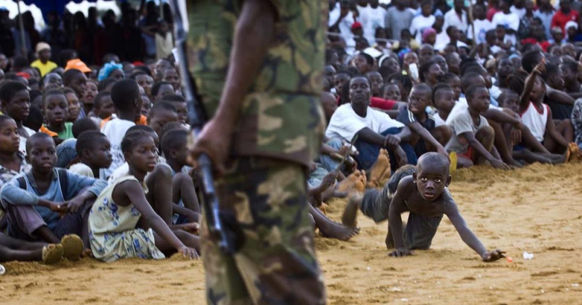 The overall winner is a compelling picture of a boy trying to retrieve his ball behind an armed guard in Liberia, taken by British photographer Jonathan Banks.
