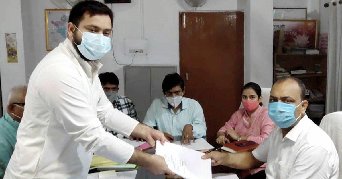 Accompanied by elder brother Tej Pratap Yadav and senior party leader Bhola Rai, Tejashwi submitted his nomination papers to the Sub Divisional Officer-cum election officer for the Raghopur seat at Vaishali collectriat.