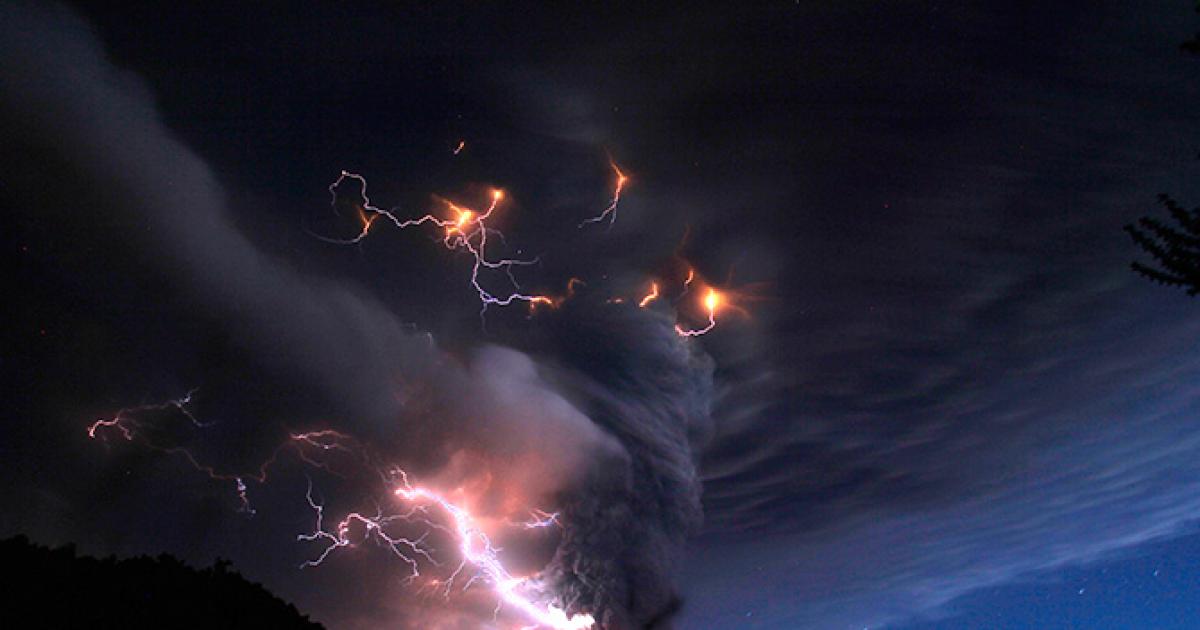 Lightning bolts strike around the Puyehue-Cordon Caulle volcanic chain near southern Osorno city. Photograph: Ivan Alvarado/Reuters