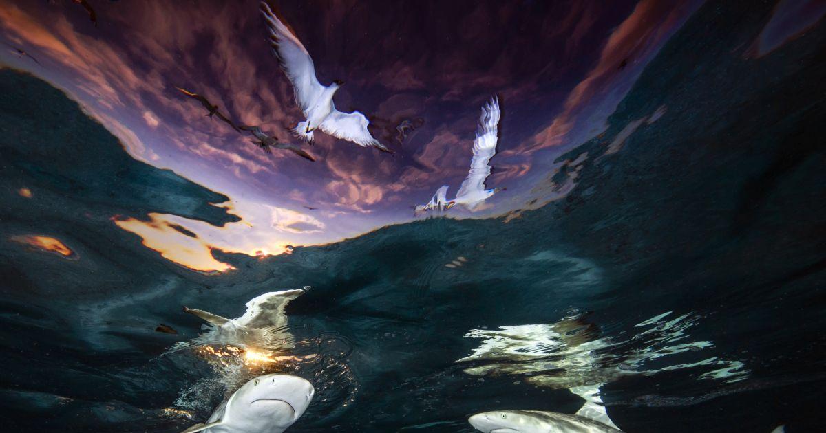 In August, 2020, I visited the island of Moorea, which was not only open to visitors but also happens to be my favorite place to photograph sharks. During this trip, I spent several evenings in the shallows at sunset, hoping to capture something unique. Instead of focusing on split-level images that I am known for, I decided to try something different. I envisioned and aimed to capture the sharks underwater with the sunset seen through Snell's window. It took many attempts, but on this particular evening the water was calm, the sharks came into a nice composition, and I got lucky with the birds as well. Since many shark species are threatened with extinction, it is my hope that images of these beautiful animals will help promote their conservation. Photograph: ©Renee Capozzola/UPY 2021