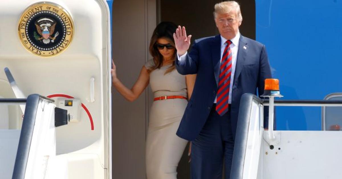 Trump and US First Lady Melania Trump touched down in their Air Force One at StanstedAirport in the east of England from the NATO summit in Brussels.