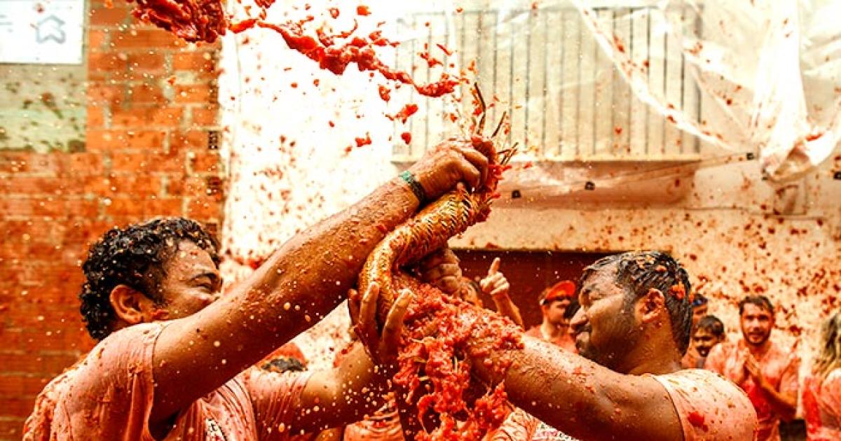 The annual event, which takes place every year on the last Wednesday of August in the Spanish town of Bunol, was inspired by a food fight between local children in 1945 in the tomato-producing region. Photograph: Pablo Blazquez Dominguez/Getty Images