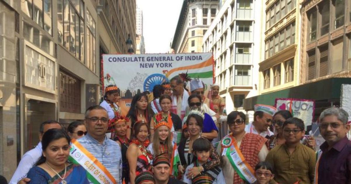 Greeting the crowd, New York city Mayor Bill de Blasio said the Independence Day parade celebrates the "extraordinary contributions" of the Indian-American community to the city.