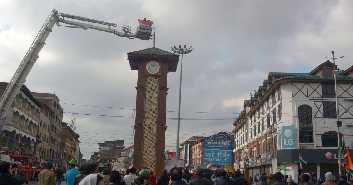 National flag was hoisted atop the historic Clock tower in Srinagar's Lal Chowk on Wednesday, 30 years after veteran Bharatiya Janata Party leader Murli Manohar Joshi did it for the first time.