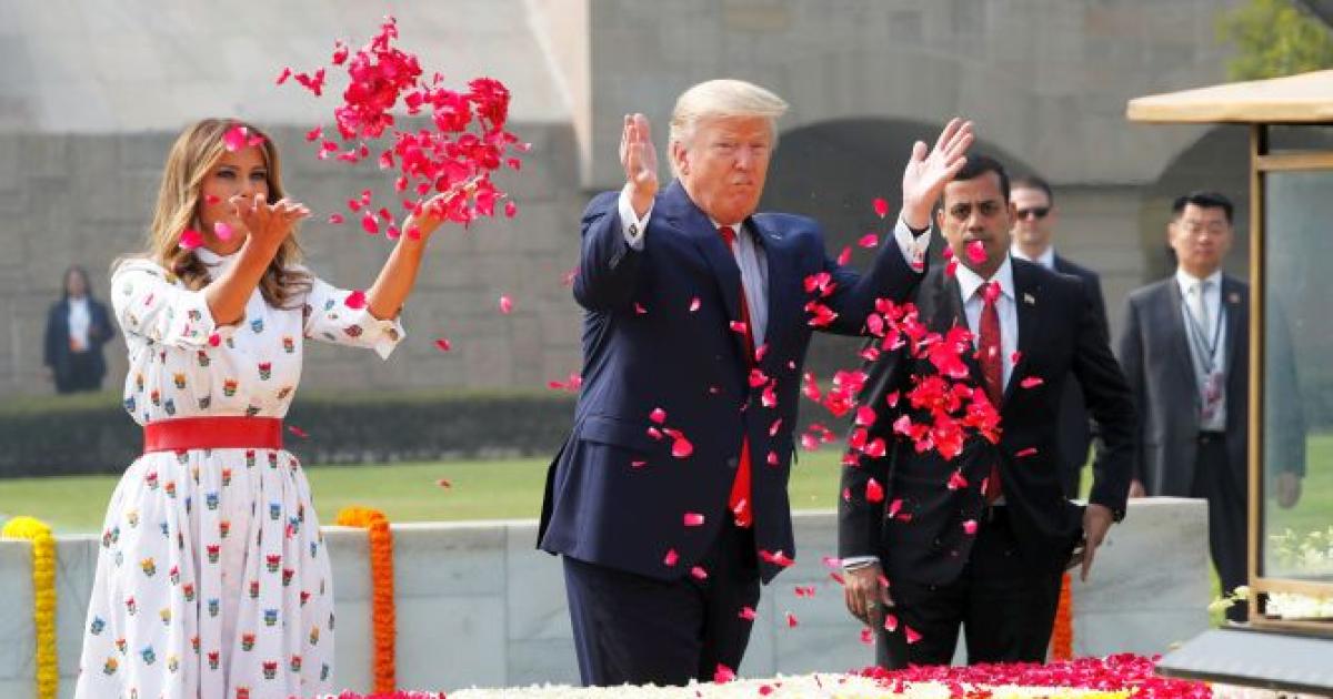 United States President Donald Trump and his wife Melania on Tuesday paid homage to Mahatma Gandhi at the memorial of India's Father of the Nation at Rajghat in the nation’s capital.