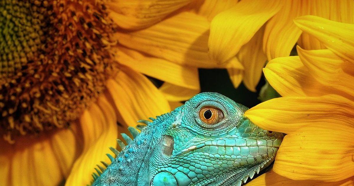 A colourful photo of a green iguana strolling through sunflowers (below) by Indonesian photographer @jjnmatt was voted the overall winner of the “World Best Photos Of Animals 2020” competition organised by photo app Agora.