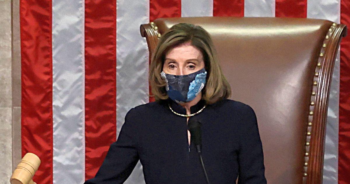 US House Speaker Nancy Pelosi presides over the vote to impeach President Donald Trump for a second time, a week after his supporters stormed the Capitol building, on the floor of the House of Representatives in Washington, DC. Photograph: Jonathan Ernst/Reuters