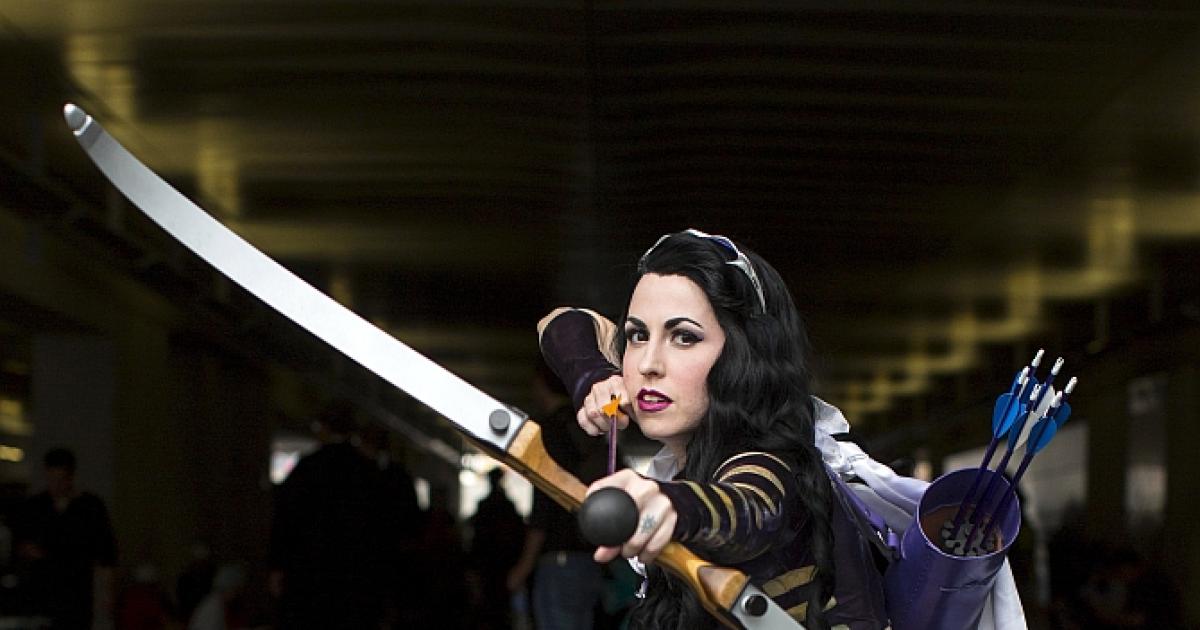 Minnie D'moocha poses as Kate Bishop Hawkeye. Photograph: Andrew Kelly/Reuters
