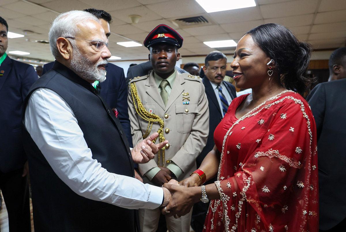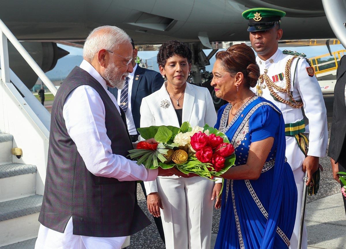 Modi was received by his counterpart Kamla Persad-Bissessar at Piarco International Airport, where he was accorded a ceremonial welcome and a guard of honour.