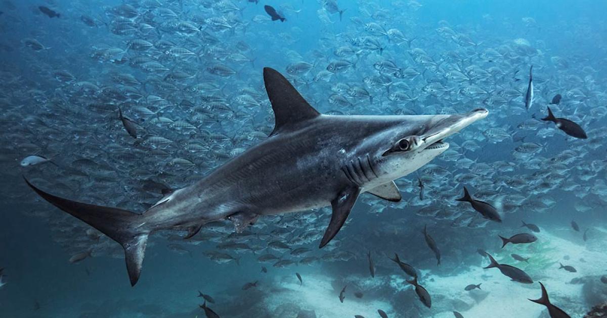 Adriana had the advantage of a sunny day and good visibility with ample natural lighting. When a school of cottonmouth jacks came into view she waited to see if a hammerhead might appear. It didn't take long. This particular shark stayed just long enough for her to capture a full frame with the school of cottonmouths in the background, giving her the unique composition she had been searching for.'
