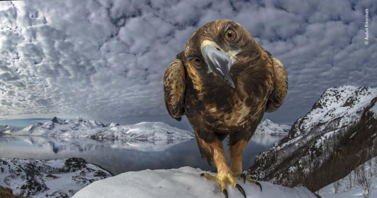 From a hide on the coast of northern Norway, it took Audun three years of planning to capture this majestic bird of prey in its coastal environment. After some time, the golden eagle became curious of the camera and seemed to like being in the spotlight. Photograph: Audan Rikardsen/Wildlife Photographer of the Year