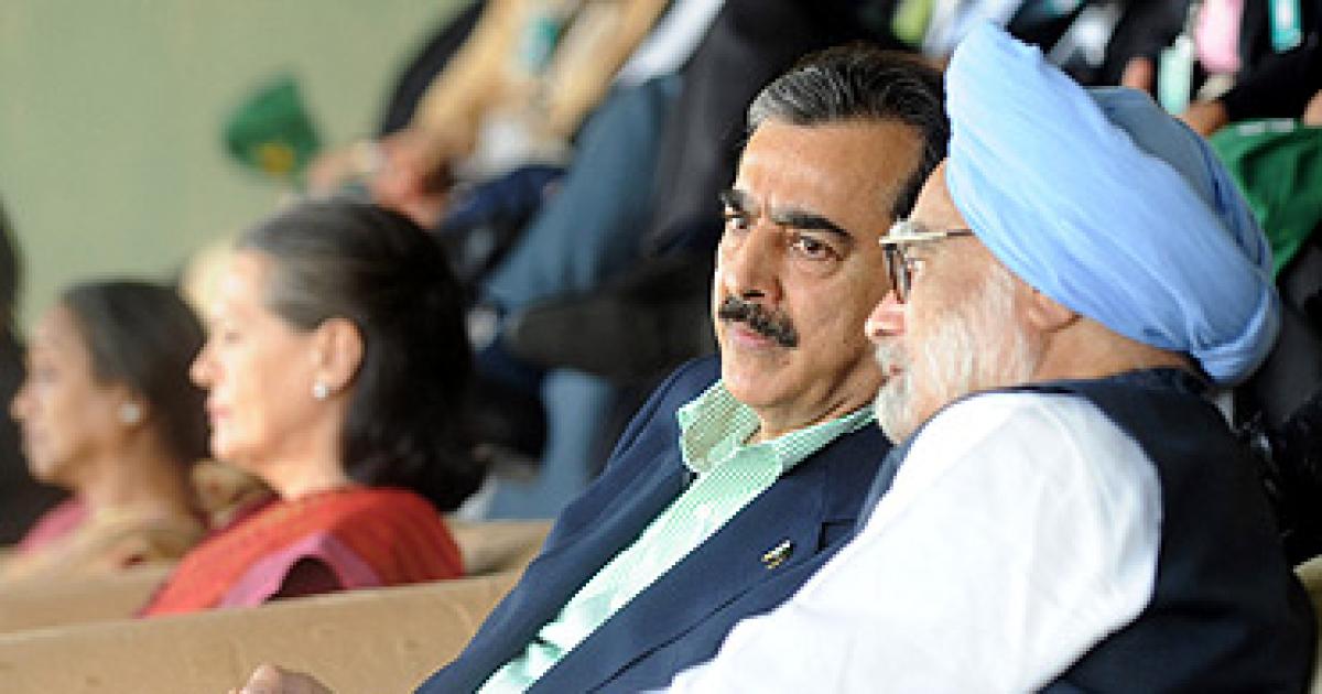Image: Dr Singh with Gilani at the Mohali stadium | Photograph: Raveendran/Reuters