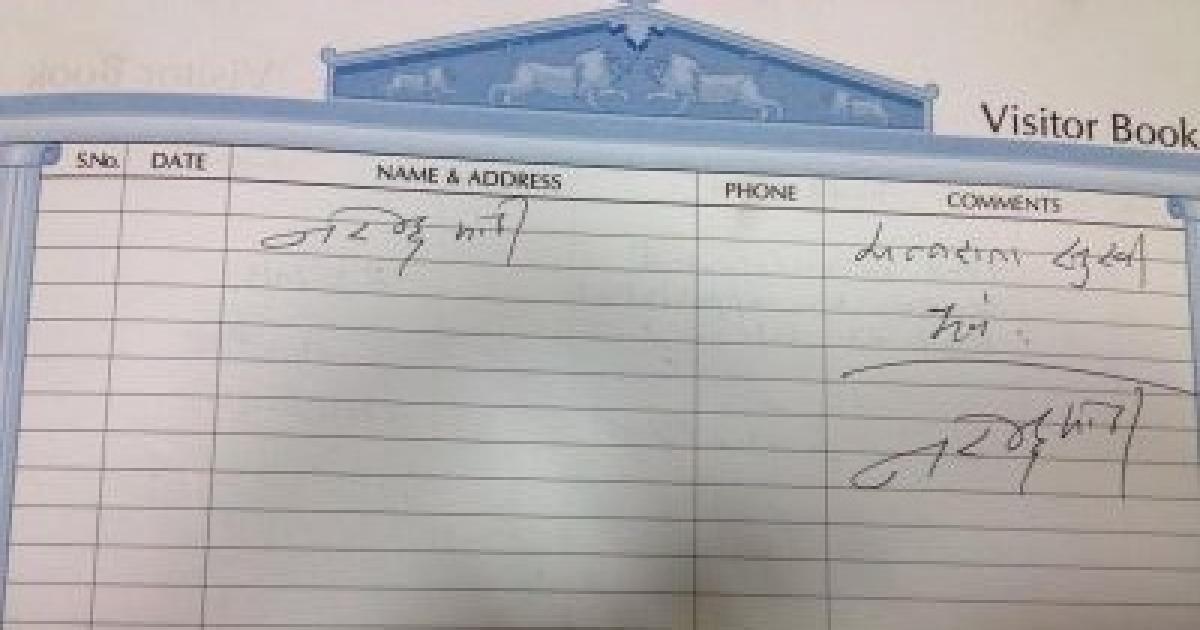 "Anna data, sukhi bhav (Blessings to the one who feeds)," wrote Modi in Hindi and signed it. According to sources in Parliament, this was the first time any prime minister had lunch in the canteen as a customer.